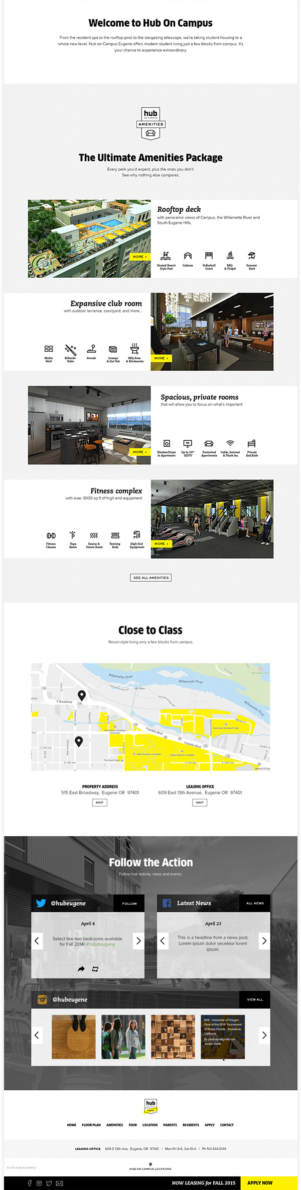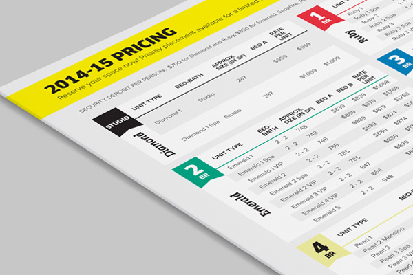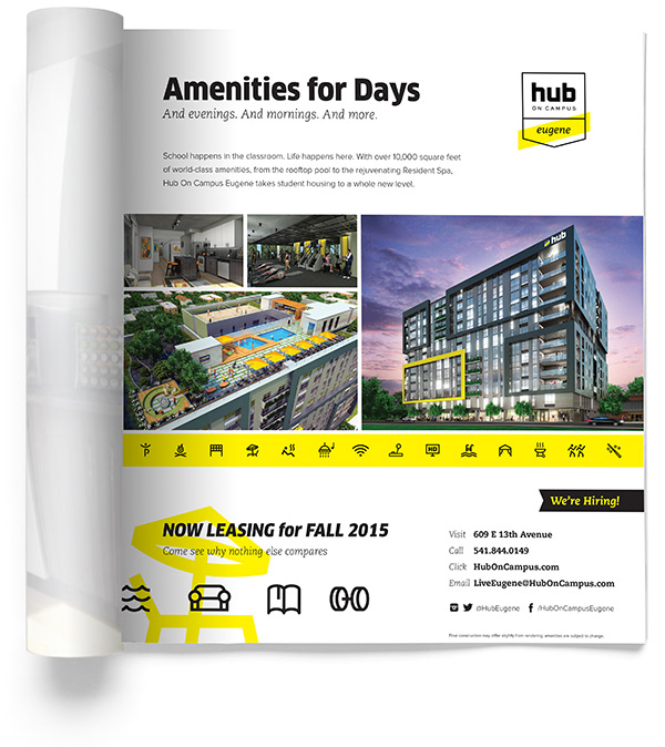 There's no point in creating a tee shirt no one wants to wear. Students are conscious and picky—especially with their tees. We created a series of fun graphic tees that featured its amenity offerings in fresh, fun, appealing ways.