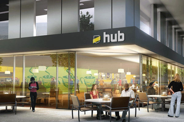 A simplified logo was created for exterior building signage to provide optimum readability and brand recognition.