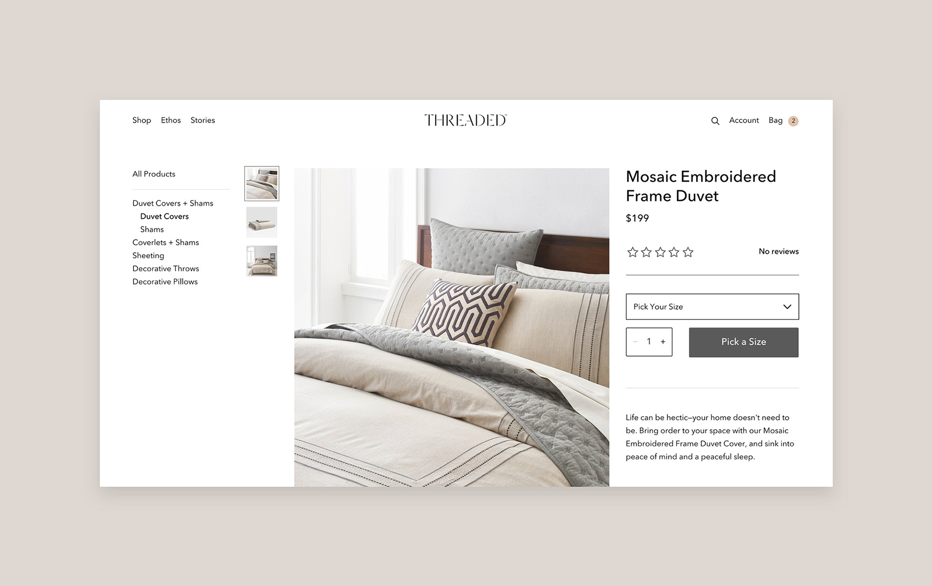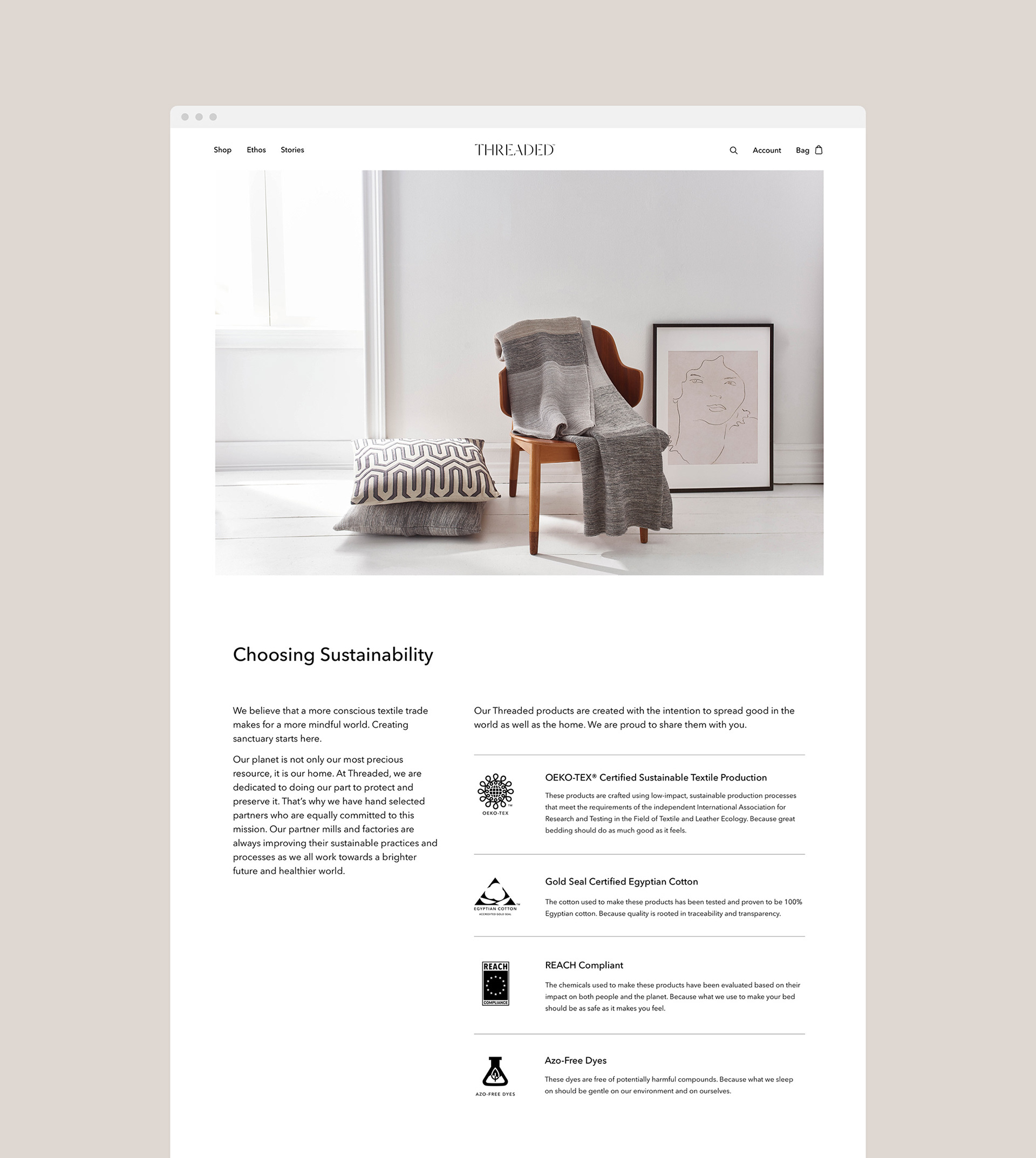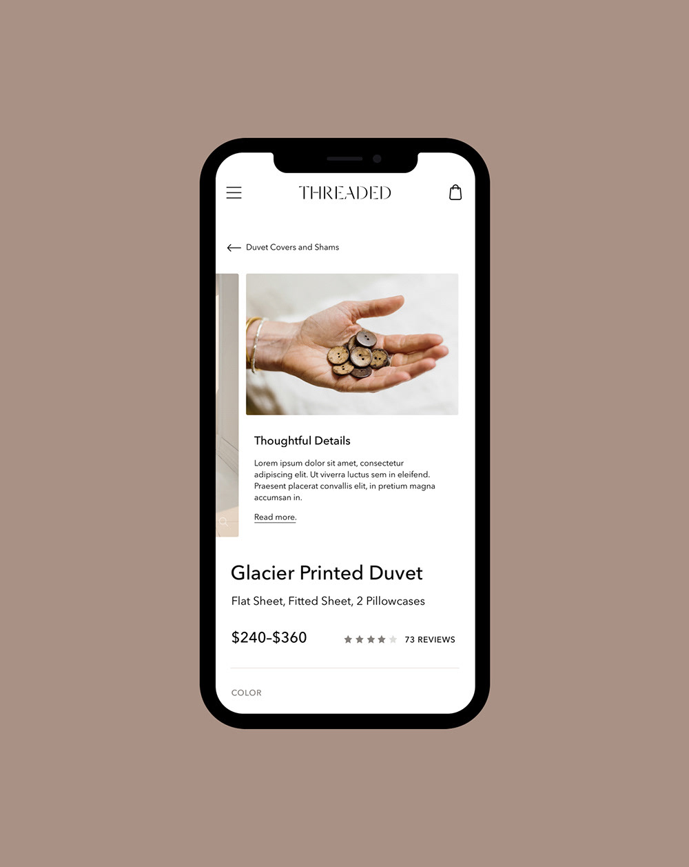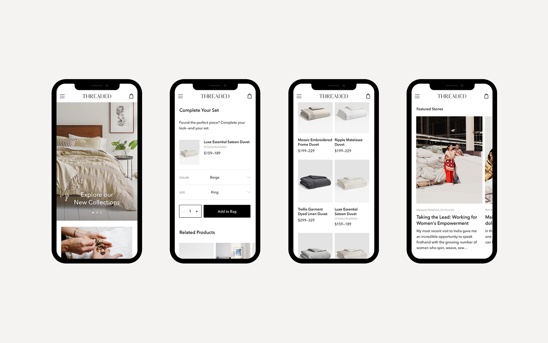A custom, mobile-friendly retail and e-commerce experience brought Threaded’s story and products to life. With the brand’s emphasis on fostering authentic connections in mind, the site ensured a welcoming, beautiful, and user-friendly design and interface that takes each customer on a journey with the brand, as well as streamlining their path to purchase. Keeping the audience and industry top of mind, the site was optimized for search through both design and content, while staying true to the soulful essence of the brand.